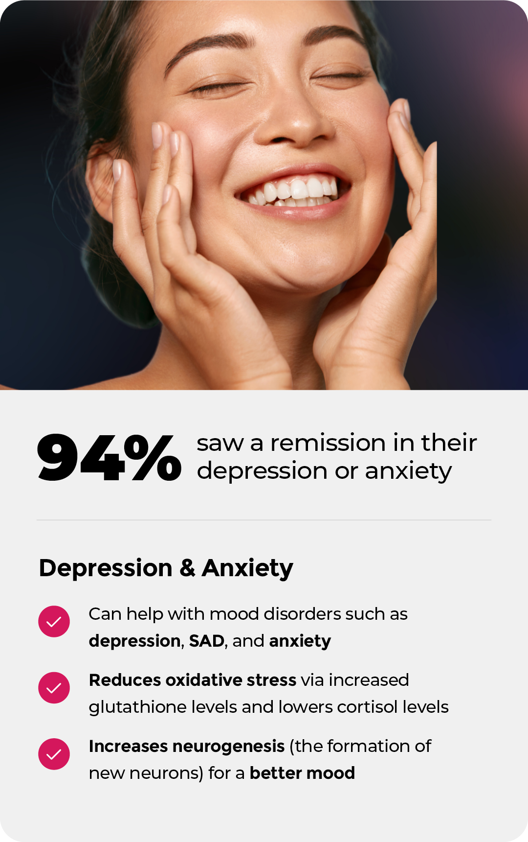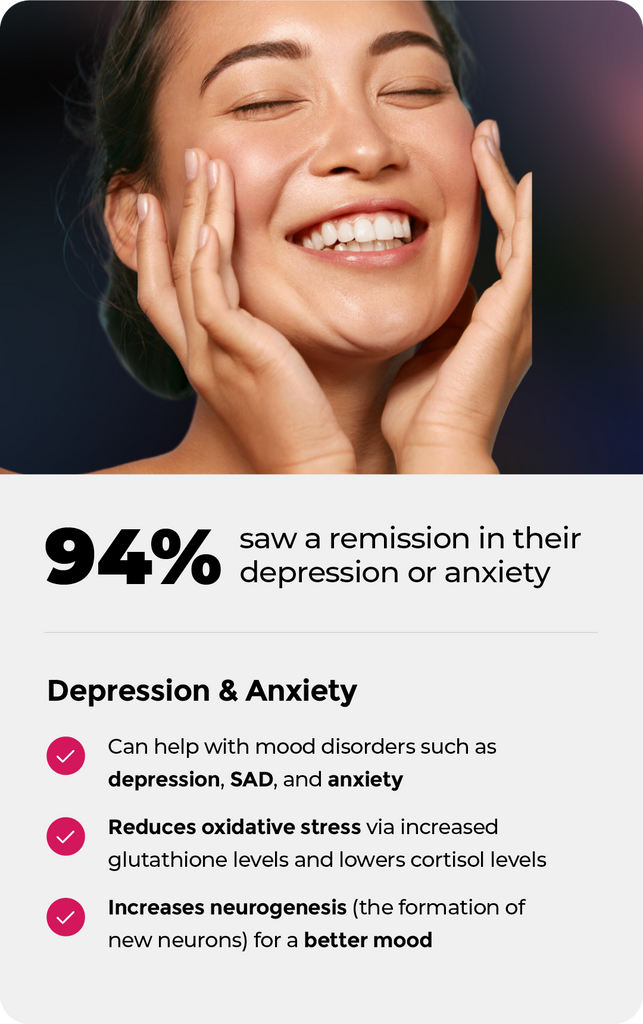 Mental Health: Near-Infrared Light Therapy can boost mental well-being by enhancing serotonin levels, reducing anxiety, and fighting depression using 810, 830, and 850 nm wavelengths. With its ability to energize brain cells and improve mood regulation, near-infrared light offers a non-invasive, rapid solution to elevate your mental health—your mind’s natural reset button!  |
